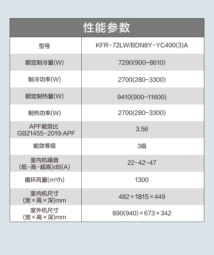 常用柜機(jī)工程系列(款二)KFR-72LW/BDN8Y-YC400(3)A 柜機(jī)套機(jī) 極地白