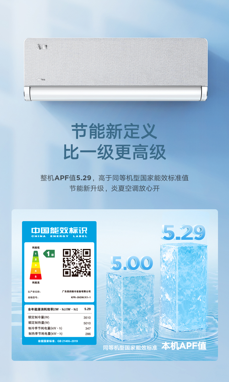 美的變頻35掛機(jī)KFR-35GW/X1-1 分體套機(jī) 月光灰