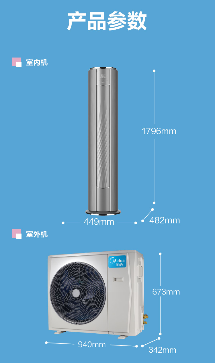 KFR-72LW/BP3DN8Y-YB233(1) 柜機(jī)套機(jī) 鈦鋼灰 美的